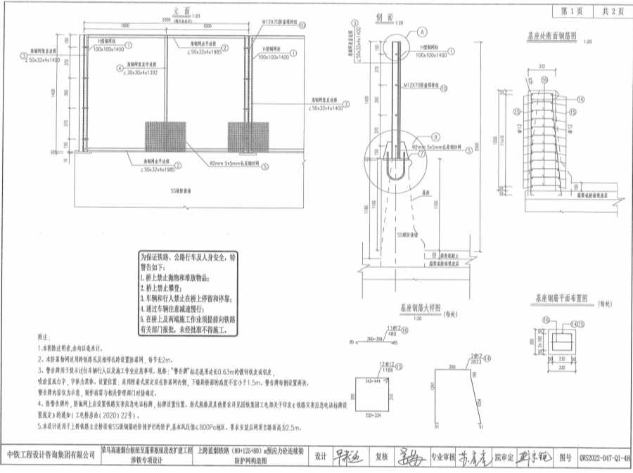 4、除警告牌外。防拋網(wǎng)上應(yīng)設(shè)置鐵路災(zāi)害應(yīng)急電話標(biāo)牌、標(biāo)牌設(shè)置位置、形式規(guī)格及其他要求詳見國鐵集團(tuán)工電部關(guān)于印發(fā)《鐵路災(zāi)害應(yīng)急電話標(biāo)牌設(shè)置規(guī)定》的通知( 工電橋房函(2020)22號(hào))。